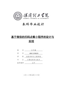 40411190630_王冬瑞_计算机科学与技术_基于微信的扫码点餐小程序的设计与实现.docx
