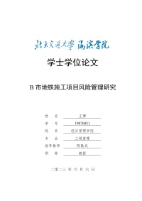 19876051_王博_工程管理_B市地铁施工项目风险管理研究