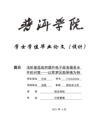 22年维普终稿行政管理 浅析基层政府提升电子政务服务水平的对策——以思茅区南屏镇为例