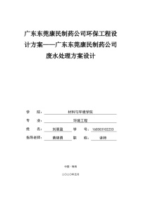 广东省东莞康民制药公司废水处理工程设计定稿-刘翠盈