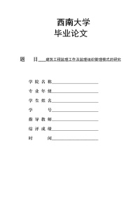 _建筑工程监理工作及监理组织管理模式的研究完整版本