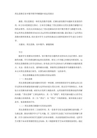 (教育)浅谈初中数学思想与方法的传授