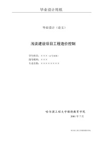 (正文)~~工程造价控制毕业论文zuixin---ok
