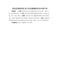 (护理学)健康教育在高血压病人护理及护理干预