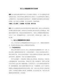 幼儿心理健康教育形式初探