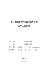 年产 0 15000 吨甲基丙烯酸甲酯