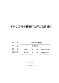 年产2万吨柠檬酸厂生产工艺的设计