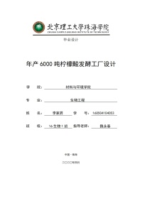 年产6000吨柠檬酸发酵工厂设计