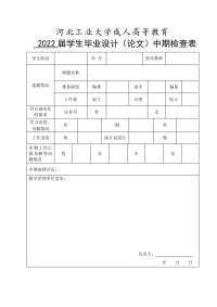 5河北工业大学成人高等教育毕业设计(论文)中期检查表(A4样板)