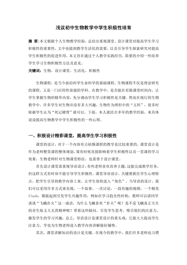 - 2026-01-26 浅谈初中生物课堂的导入方法_原文对照报告