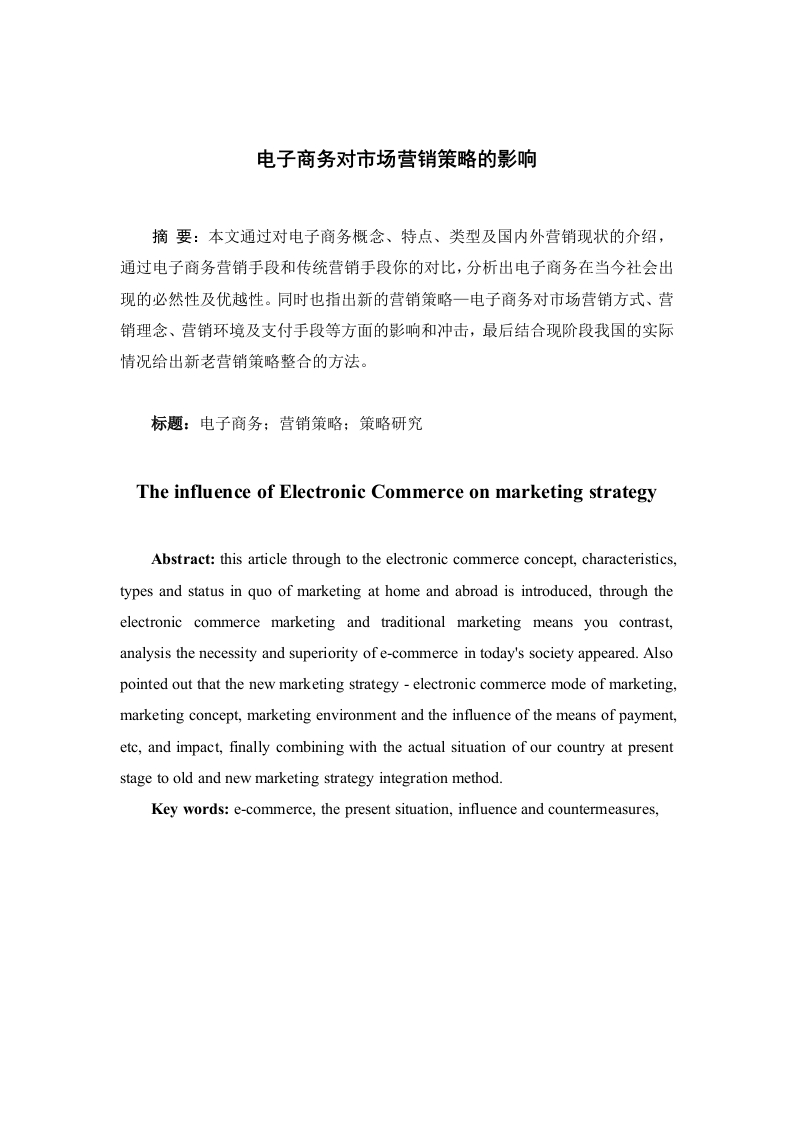 首页毕业论文电子商务电子商务对市场营销策略的影响