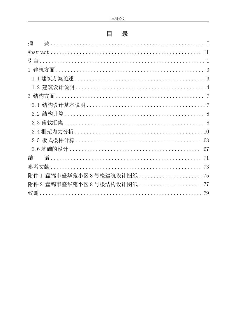 本科论文目录摘要Abstract.··II11建筑方面31.1建筑方案论述342.1结构设计基本说明782.3荷载汇集..82.4框架内力分析102.5板式楼梯计算.·..6367结7173附件1盘锦市盛华苑小区8号楼建筑设计图纸.75附件2盘锦市盛华苑小区8号楼结构设计图纸.·7779本科论文摘要设计分为两个主要部分,第一部分是建筑设计,主要包括立面设计,总平面设计,平面设计和断面设计。总平面设计的这一部分主要是提高绿化率,优化建筑物的空间,增加容积率,规划不同类型和不同特征和功能的建筑物布局。主要目的是设计一种完全人性化,节省土地并拥有美丽舒适环境的平面图。图形设计主要根据每个房间的使用面积,和使用功能确定其水平部分和形状的组合,并根据照明和通风要求,设计每个房间的门窗尺寸和大小:立面设计主要考虑住宅楼的整体美感。截面设计根据其使用要求,确定其地板高度,窗户高度,室内和室外高度以及窗台高度。第二部分是结构设计。确定结构布局后,首先执行初始截面估计,然后进行载荷统计,然后计算水平和垂直载荷下的内力。要找到最不利的组或内力组合的某些组,最后选择最安全的结果,计算梁,板和柱的钢筋,并绘制工程图。此外,还设计了地基和楼梯,计算了楼梯的内力,选择和地基,并绘制了结构图。楼梯是板式楼梯,地基是支柱下的独立基础。YJK用于框架结构设计计算。总体结构设计过程严格遵守相关专业规范的要求,参考相关材料和最新的国家标准和法规,并对设计的各个方面进行全面而综合的科学考虑。简而言之,该设计原则是经济,安全,美观,适用且易于使用的。关键词:框架结构;建筑设计;结构设计;内力计算本科论文AbstractThe design consists of two parts,one part is the architectural design,whichmainly includes:master plan design,plan design,facade design and section design.The overall graphic design go into the layout of the different types of nature orfunction of buildings,which can take full use of architectural space,enhance thevolume and improve the greening rate ,in order to save space,also fullyhuman,make layout of good environmental.The plan design is in the light of the functional area of the rooms and isdetermined by the relation of combination among all the parts of the building inhorizontal plan,and design the room size and dimensions of doors and windowsaccording to ventilation and lighting .The facade design should be based on theoverall building appearance .The section design determine the height of every store,windows,windowsill and height gap between outdoors and indoors on the basis ofthe requirement of function.The other part is structure design,when the structuralarrangement is determined,firstly take an advance estimate of the cross Aftercreating the section,proceed with load statistics and calculate the internal forcesunder horizontal and vertical loads,identify the most disadvantaged group,or acombination of several sets of internal forces,then select the results of the mostsecure and computing and reinforcement of beam ,board,column and drawings.Inaddition,design foundation and staircase,complete foundation,staircase selection,internal force calculation and drawing.The stair is a crank flat staircase,and thefoundation is an independent foundation under the pillar.I also go into thestructural design of the framework calculation by YJK.In the design process of the entire structure,I follows the request of therelated specialized standard strictly,then refer to correlation data and the relatednewest national standards standard,then design each link on the synthesiscomprehensive scientific nature consideration.In brief,the suitable,the security,the economy,the beauty,easy to operate is this design principle.Keyword:frame structure;architectural design;structure design;Combinationof internal force calculation of internal force