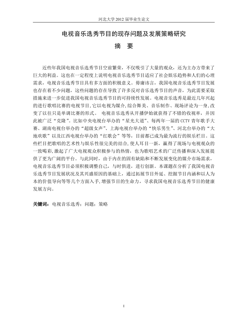 首页毕业论文工商管理电视音乐选秀节目的现存问题及发展策略研究