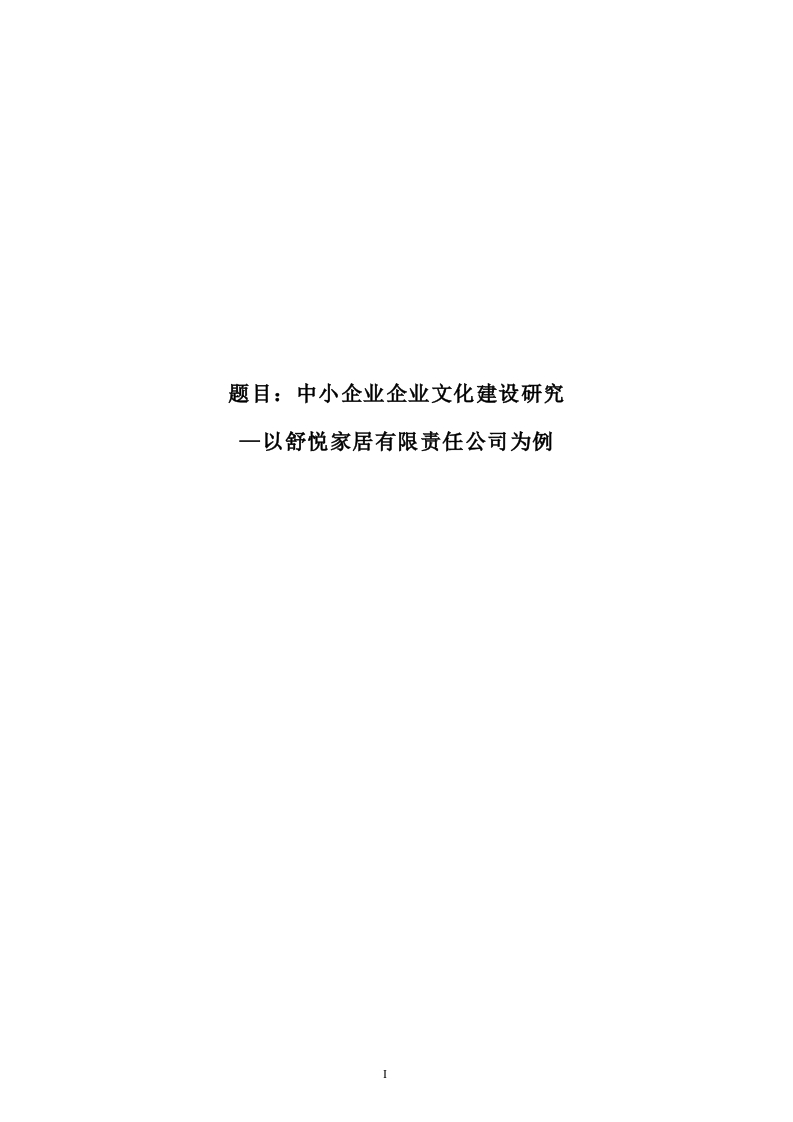 题目:中小企业企业文化建设研究一以舒悦家居有限责任公司为例目录目摘要.第1章绪论…1.1研究背景及意义1.2研究现状及发展趋势..2第2章企业文化概述…32.2企业文化的作业..33.1中国家居公司企业文化建设基本情况....53.2舒悦家居有限责任公司企业文化建设基本情况.…5第4章中国中小企业企业文化建设所处困境的原因.77743企业文化建设缺乏长远、稳定规划…8第5章中国中小企业文化建设的途径和方法...95.1以人为本构建独特企业文化…95.3以企业活动为载体,传播企业文化...10结论12参考文献…13摘要本次课题将由企业文化的基本概念出发,探讨企业文化在企业发展中的重要作用。通过深入的的调查研究,选择了舒悦家居有限责任公司作为案例对中小型企业文化建设进行剖析,着重阐述中小型企业企业文化建设的对策和具体措施。本文的主要工作如下:深入调查舒悦家居有限责任公司相关资料,同时对其他收集到的相关资料进行分析,截取有用的内容作为研究资料和依据,为我国中小企业企业文化建设存在的问题提出部分可行性解决方案,为企业完善企业文化建设提供了一定的借鉴和参考。关键词:独特企业文化诚信因企制宜