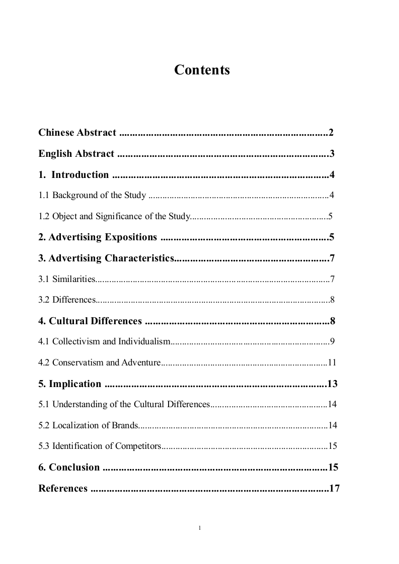 ContentsChinese Abstract.....2English Abstract…1.Introduction ...........1.1 Background of the Study.41.2 Object and Significance of the Study.....52.Advertising Expositions ........3.Advertising Characteristics......3.1 Similarities.........73.2 Differences............4.Cultural Differences ........4.1 Collectivism and Individualism..........4.2 Conservatism and Adventure.................115.Implication.....5.1 Understanding of the Cultural Differences.......5.2 Localization of Brands..................145.3 Identification of Competitors......6.Conclusion ..............References .........1近十年中美可口可乐广告视频的文化差异分析摘要广告是经济活动,同样也是文化产品。广告视频在跨文化交流中起着重要的作用,不同国家、不同民族的广告视频中都蕴藏了独特的文化内涵,文化的差异性很明显的展现在广告视频中。笔者通过比较近十年可口可乐公司在中国与美国发布的关于可口可乐的广告视频,就广告视频中表现出的文化差异进行分析,对我国企业实施“走出去”战略提供建议。笔者强调广告创作者应充分认识文化差异,在广告视频中体现品牌的民族性与国际性,找准目标市场本土品牌的竞争对手,在广告视频中突出产品特色,以期实现更好的产品宣传效果。关键词:广告视频:文化差异:比较:“走出去”战略2Analysis of Cultural DifferencesBetween Chinese and American Coca-ColaAdvertising Videos in Recent 10 yearsAbstractAdvertising is an economic activity as well as a cultural product.Advertising video plays animportant role in cultural exchange.Advertising videos of different countries and nationalitiescontains unique cultural connotations.Cultural differences will be obviously embedded in theadvertising videos.By comparing the advertising videos about Coca-Cola published by Coca-Colacompany in China and the United States in recent ten years,the author analyzes the culturaldifferences in the advertising videos and provides suggestions for Chinese enterprises to implementthe "going global"strategies.The author emphasizes that advertisers should fully understand thecultural differences,embody the national and international characteristics of the brand in theadvertising videos,find out the competitors of the local brand in the target markets,and highlightcharacteristics of products in the advertising videos,so as to achieve a better product publicityeffect.Key words:advertising videos;cultural differences;comparison;the“going global'”strategies3