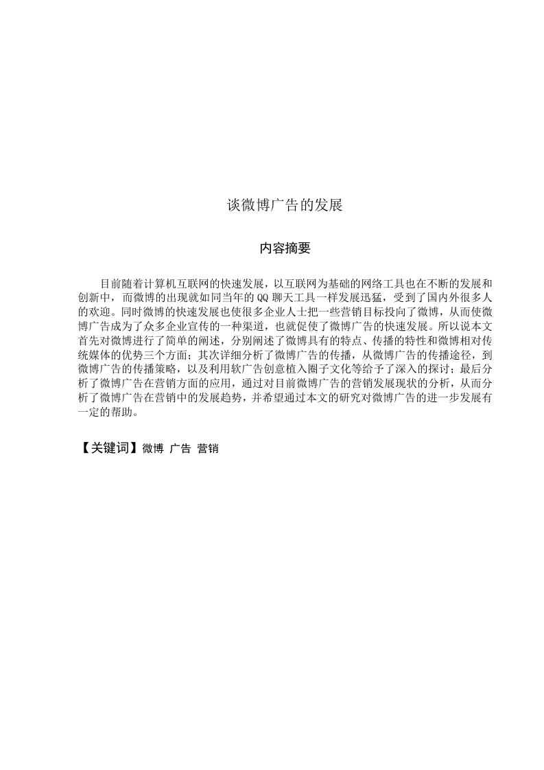 首页毕业论文广告学谈微博广告的发展