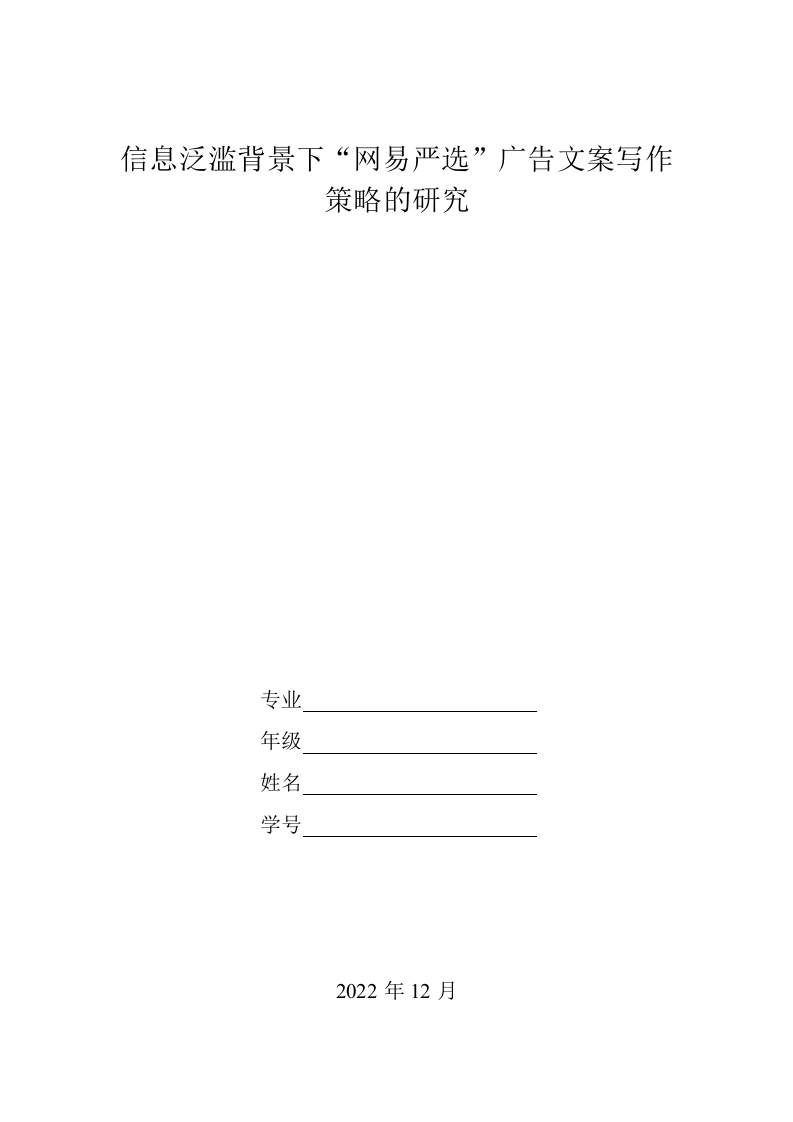 首页毕业论文广告学信息泛滥背景下“网易严选”广告文案写作策略的研究