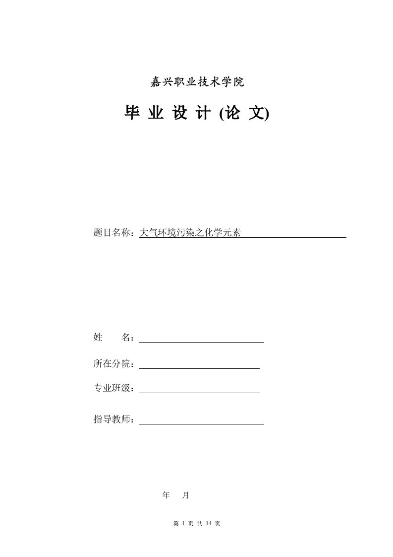 首页毕业论文化学大气环境污染之化学元素