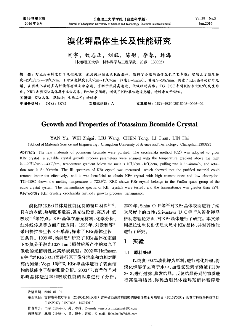 首页毕业论文化学溴化钾晶体生长及性能研究