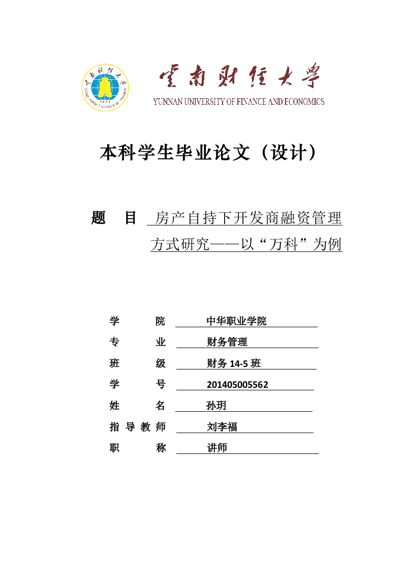 首页毕业论文会计房产自持下开发商融资管理方式研究——以“万科”为例 (2)