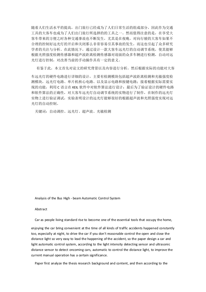 首页毕业论文机械工程大客车远光灯自动控制系统设计