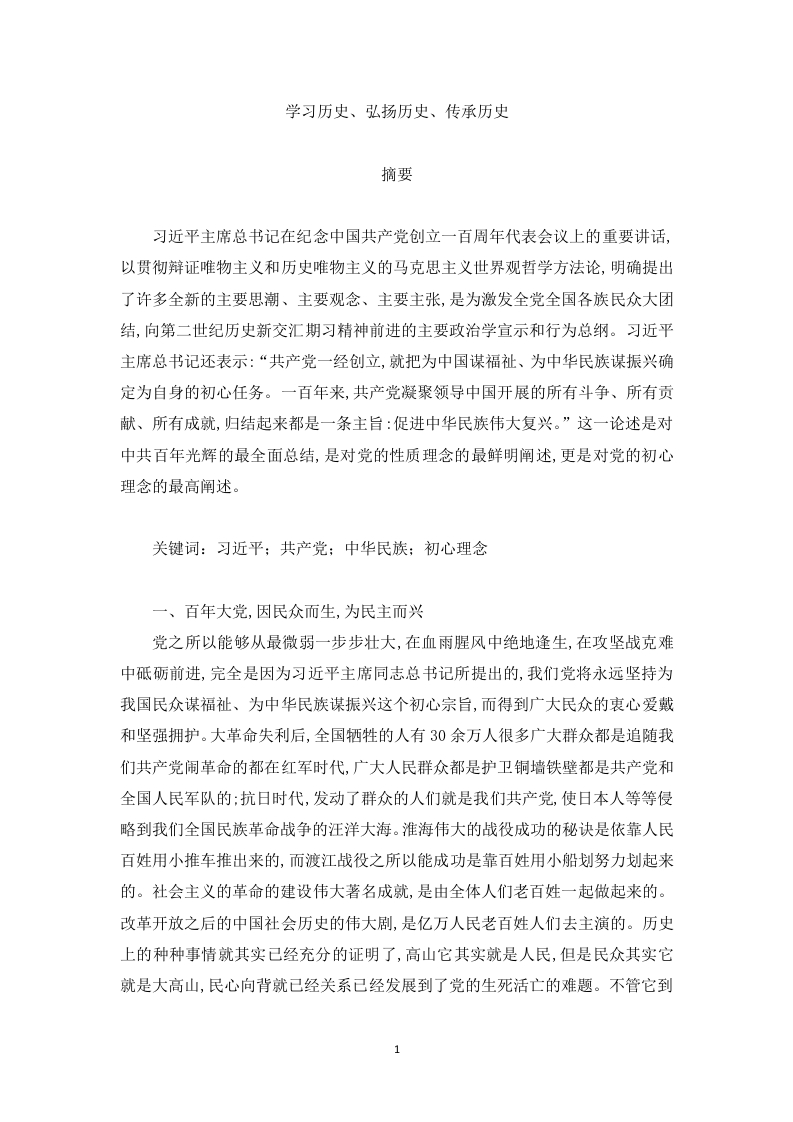 学习历史、弘扬历史、传承历史摘要习近平主席总书记在纪念中国共产党创立一百周年代表会议上的重要讲话,以贯彻辩证唯物主义和历史唯物主义的马克思主义世界观哲学方法论,明确提出了许多全新的主要思潮、主要观念、主要主张,是为激发全党全国各族民众大团结,向第二世纪历史新交汇期习精神前进的主要政治学宣示和行为总纲。习近平主席总书记还表示:“共产党一经创立,就把为中国谋福祉、为中华民族谋振兴确定为自身的初心任务。一百年来,共产党凝聚领导中国开展的所有斗争、所有贡献、所有成就,归结起来都是一条主旨:促进中华民族伟大复兴。”这一论述是对中共百年光辉的最全面总结,是对党的性质理念的最鲜明阐述,更是对党的初心理念的最高阐述。关键词:习近平:共产党:中华民族:初心理念一、百年大党,因民众而生,为民主而兴党之所以能够从最微弱一步步壮大,在血雨腥风中绝地逢生,在攻坚战克难中砥砺前进,完全是因为习近平主席同志总书记所提出的,我们党将永远坚持为我国民众谋福祉、为中华民族谋振兴这个初心宗旨,而得到广大民众的衷心爱戴和坚强拥护。大革命失利后,全国牺牲的人有30余万人很多广大群众都是追随我们共产党闹革命的都在红军时代,广大人民群众都是护卫铜墙铁壁都是共产党和全国人民军队的:抗日时代,发动了群众的人们就是我们共产党,使日本人等等侵略到我们全国民族革命战争的汪洋大海。准海伟大的战役成功的秘诀是依靠人民百姓用小推车推出来的,而渡江战役之所以能成功是靠百姓用小船划努力划起来的。社会主义的革命的建设伟大著名成就,是由全体人们老百姓一起做起来的。改革开放之后的中国社会历史的伟大剧,是亿万人民老百姓人们去主演的。历史上的种种事情就其实已经充分的证明了,高山它其实就是人民,但是民众其实它就是大高山,民心向背就已经关系已经发展到了党的生死活亡的难题。不管它到1底是一个政党,还是一种政体它的前途和命运就已经决乎民心向背,而民心就是影响主要的社会政治。在全世界党的发展史上,从未有哪个党像我们党这样,永远把“民众”摆在心头最关键的地位,与民众心心相印,与民众同甘共苦:从未哪个党员这样关注民众的急难愁盼提问,把“问题清单”变为“履职名单”,用共产党人的“辛勤指数”持续增强民众的得到感,幸福安全感。通过全党全国各族人民群众的持续努力,我们已经完成了一段世纪的历史交汇阶段,在中华大地上全部建立了健康社区,历史性地克服了一定贫困社会问题,正意气风发地朝着全部建设成社会主义现代化强国的第二个世纪历史交汇阶段挺进。二、百年初心使命,凝结成就了保持和发扬中国特色社会主义这一大道中国特色社会主义,是党和人民经过千辛万苦、花费了极大努力而取得的根本性成果,是实行中华民族辉煌的真正大道,开辟了我国式社会主义现代化发展新路子,创造了现代文明的新形貌。新的发展征途上,我们必须贯彻党的本质理论知识、基础之路、基础方略,协调统筹平衡推动“五位一体”综合战略布局、协同推动“四大全方位”开发规划规划,全方位改革对外开放,立足新经济发展阶段,全方位、精准、全方位地落实新发展观,形成创新发展格局,促进经济高质量增长,推动民族科学自立自强,保障群众人人当家作主,坚决依法治国,坚定社会主义核心价值体系,努力在经济社会优先发展中保护和改善百姓民生,保持人与自然的和谐共存,协同推动我们人人富强、大国富强、祖国美好。中国人所经历的非凡百年,在我们人类社会历史长河中也只有短短的一瞬间。习近平主席同志总书记在祝贺中共诞生一百周年全国代表大会上的主要演讲中告诉全党:“初心易得,却终究难守。”代表中共中央号召所有中共党组织员:“牢记初心任务,坚持信念,实践党的宗旨,永久保存同群众的血肉联系,自始至终地同民众想在一块、干在一块,暴雨同舟、同甘共苦,不断为满足民众对美好的追求不懈,奋斗为党和人民争得更大荣誉!”这是我们每一个中国共产党人均要经深刻思索和认真践履的。三、历史和我们都选择了共产党一百多年来,党团结领导着我国民众努力奋斗,写下了中华民族在数千年史上最为恢宏的历史。我们必须认真落实习近平主席同志总书记在庆祝中共建立一百周年会议上的主要讲话精神,继续为美好生活而努力,紧密依托社会群众创新历史,体现党全心全意地为社会服务的基本理念,站稳当前立足点,坚定党的群众路线,尊崇社会群众开创奉献精神,落实党以百姓群众利益为中心的发展思路,发展全过程人民民主政治,保障社会公平正义,着力缓解发展不均衡不完善的问题和百姓群众利益急难愁盼问题,促进个人的全面发展、为全体人民共同富裕,实现社会更加突出的实质性发展!历史发展,在一代代人接续奋进中继向往开来。更一百多年来,党团总结并带领着我国人民,开创了光辉道路、开创了光辉经验、实现了丰功伟绩,共同写下了中华民族在千百年史上最为恢宏的光辉发展史。而现在,我们在以习近平总书记同志为重要核心的新中央带领下,又开始了实现第二次世纪历史发展交汇期新的赶考之路。来路并不是很坦途,但我们将面对着史无前例的机遇与挑战。走好新的长征路,最要紧的就要切实做好“二个保证