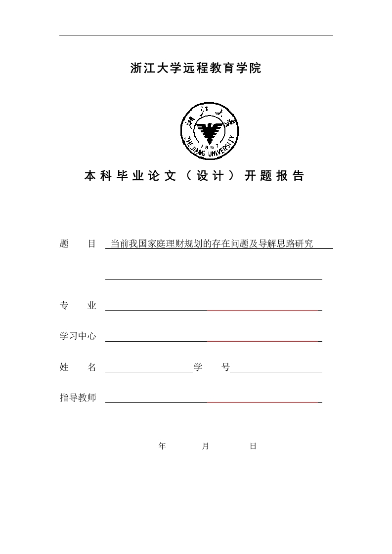 浙江大学远程教育学院本科毕业论文(设计)开题报告题当前我国家庭理财规划的存在问题及导解思路研究专业学习中心姓名学号指导教师年月日浙江大学远程教育学院本料生毕业论文〔设计)一一开题报告一、文献综述(一)国内研究山骆淑芳(2015)认为,近年来,我国经济在市场经济条件下,得以快速发展,关于居民家庭经济生活的研究得到重视,居民的消费与投资行为成了近些年来经济领域研究的热点,随之对于居民的投资、收入的分配、消费理论等形成了较为系统的理财体系,并且随着理财产品的日益增加,理财师成了一种有专业技能的人士。理财简单地说就是对钱财的使用和投资的规划。经调查显示,有大概90%的被调查者有过投资理财的经验,在这当中也只有少数的家庭,将大部分资产用于金融投资。而且这些被调查者,还是属于家庭资产较为富裕的。因此,解决大部分家庭理财的四个重要难点是国家扶持家庭理财的重点关注目标。当然,不能盲目的帮助,要了解不同生命周期下的不同资金情况,还有不同家庭的情况来调节应对措施。四耿啸天(2016)认为,在经济学中,家庭定义为有一个或一群共享资源以追求共同福利的人组成。家庭理财通俗来说就是让家里的钱不少反而变多,通过理财的一些管理和投资的手段,让家庭的资产可以自由支配并非常安全、长久和稳足。在制定家庭理财计划时,应将家庭的收支,负债,资产以及家庭对风险的偏好程度和承受能力等诸多因素与家庭的预期目标相结合,运用储蓄、股票、基金、保险、外汇、证券等金融工具或金融衍生工具合理的安排资金,在确保家庭财产安全的情况下,根据不同人的承受能力,来制定不同的适合个人家庭的理财方案。]刘万军(2016)认为,随着家庭收入的不断增加,外部环境的不确定性越来越多,怎样能使得自己的资产保值、增值成了每个家庭不得不去思考的问题。最近经常有媒体发布一些关于家庭理财的新词汇,这些其实间接地反映出社会对家庭理财的不断关注和重视。此外,许多金融机构也在根据市场需求不断推出各种个人或者家庭理财服务。[例李兴华(2016)认为,自改革开放以来,我国经济迅速发展,人们的生活水平逐渐提高,面对玲琅满目的消费品,如何在自己现有的收入情况下提高自己的生活质量是我们这代年轻人共同面对的问题。随着西方理财观念在我国的渗入,越来越多的人关注家庭理财问题,人名意识到通过合理的家庭投资理财能过对影响家庭经济生活的许多因素进行有效的规避。(二)国外研究状态l4 Sarah Brown,Karl Taylor(20l4)认为,随着家庭收入的不断增加,家庭理财已成为一个热点问题。家庭投资理财需求较大,主要表现为银行存款的搬家,将其投入到股市、债券、保险、证券、等各种理财产品上。最近的几年里,由于资产的累积和人们不断增长的经济知识,越来越多的人开始尝试理财产品。当然,聪明的金融机构怎么会没有察觉这一趋势。[15]Florian Ederer,Gustavo Manso(2013)认为,法律上来说,由于投资者缺浙江大学远程教育学院本科生毕业论文(设计)一一开题报告少必要的理财知识、精力,即便服务机构出现违规操作,投资者也不能正确维护自己的合法权益。此外,国外的金融市场还处在不断发展和逐步完善的过程中,相关法律法规的不完善也让家庭理财的投资者无处申冤,被那些违法的理财产品所坑骗之后,没有相关的部门对其进行专门的管理,更甚者被虚假销售,侵犯了消费者的知情权,让消费者在不知不觉中承受了财产损失。到目前为止,家庭或个人理财业务似乎还没成为银行业务的重点,所以很多银行缺乏家庭或个人理财业务的相关规章制度和基本操作方法。当下家庭或个人理财业务人才队伍的组建极为关键,对理财师的要求也比较严格,不仅仅要有现代经济科学理论知识背景通晓银行传统金融服务产品并且还需熟悉新兴的金融衍生产品和国家政策相结合的情况下的实际操作。二、论文提纲一、绪论(一)研究背景(二)研究意义二、第三方支付的概述(一)第三方支付与第三方支付平台的概念(二)第三方支付的优势特点(三)第三方支付的发展状况三、中美第三方支付平台的比较一一PayPal,支付宝(一)发展(二)支付环境比较(三)运作模式比较(四)监管比较四、互联网环境下第三方支付的风险(一)合同履约风险(二)沉淀资金风险(三)非法资金套现风险(四)硬件系统风险(五)网络欺诈风险(六)纠纷处理风险五、完善我国第三方支付的风险防范(一)明确沉淀资金的利息归属问题(二)加强监管,防止通过第三方支付平台进行非法交易(三)加强与银行的合作,达到“双赢”(四)加大网络安全技术投入,确保交易安全(五)进行市场细分,拓展盈利模式六、结论三、参考文献