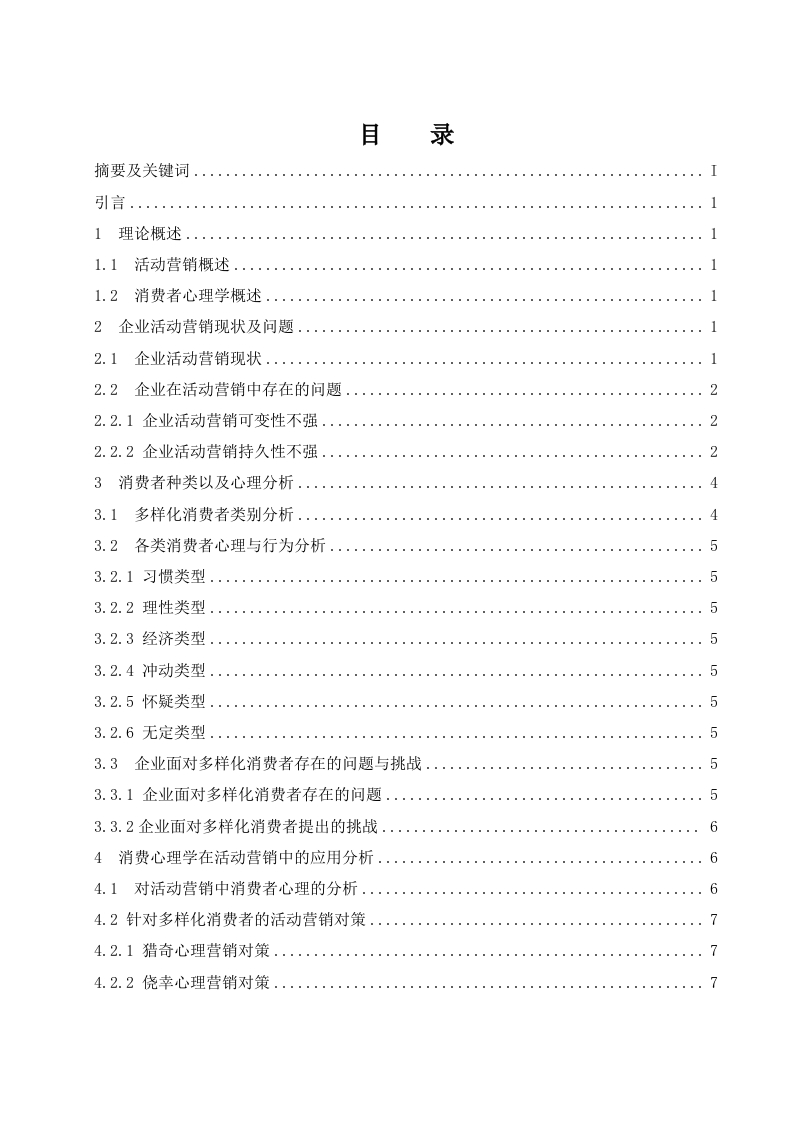 目录1.1活动营销概述.....1.2消费者心理学概述2企业活动营销现状及问题..·12.2企业在活动营销中存在的问题.22.2.1企业活动营销可变性不强..2.2.2企业活动营销持久性不强...·3消费者种类以及心理分析....43.1多样化消费者类别分析..43.2各类消费者心理与行为分析...3.2.1习惯类型.....3.2.2理性类型3.2.3经济类型...3.2.4冲动类型....53.2.5怀疑类型3.2.6无定类型.…3.3企业面对多样化消费者存在的问题与挑战3.3.1企业面对多样化消费者存在的问题53.3.2企业面对多样化消费者提出的挑战..64消费心理学在活动营销中的应用分析..·64.1对活动营销中消费者心理的分析..4.2针对多样化消费者的活动营销对策...7742.2侥幸心理营销对策…775消费心理学在活动营销中的创新运用96结论910论消费心理学在活动营销中的运用摘要:随肴中国经济的快速发展,每一个企业都面临着不进即退的挑战。企业必须加快产业升级和转型,采取活动营销的方式,是企业获得更多市场占比的重要营销方式。目前我国仍然有许多企业在活动营销的竞争上存在问题,对消费者消费心理的研究依然不够充分。然而市场主动权的转变,使得企业不得不去迎合消费者的口味,深入的去了解消费者的消费心理。本文旨在了解消费心理在活动营销中的应用现状,消费者心理对企业的活动营销战略变化产生了怎么样的影响,以及对消费者心理与活动营销的关联研究,给出活动营销中相应问题的解决方法及对策,借鉴经验,提取精华并且创新,以供企业活动营销参考。关键词:消费心理学:活动营销:企业经济On the application of consumer psychology in activity marketingAbstract:With the rapid development of China's economy,every enterprise is faced with the challenge of notretreating.Enterprises must speed up industrial upgrading and transformation,and adopt the way of activitymarketing,which is an important marketing way for enterprises to obtain more market share.At present,there arestill many flaws in the planning of event marketing competition in China,and the research and application ofconsumer consumption psychology are still insufficient.However,the change of market initiative makes enterpriseshave to cater to consumers and understand consumers'consumption psychology.The purpose of this article is tounderstand the current status of consumer psychology in activity marketing,how does consumer psychology affectthe change in corporate activity marketing strategies,and the related research on consumer psychology and activitymarketing,and give the corresponding problems in activity marketing The solution and countermeasures,draw onexperience,put forward the essence and innovation,for the reference of corporate event marketing.Keywords:consumer psychology;activity marketing;enterprise economy