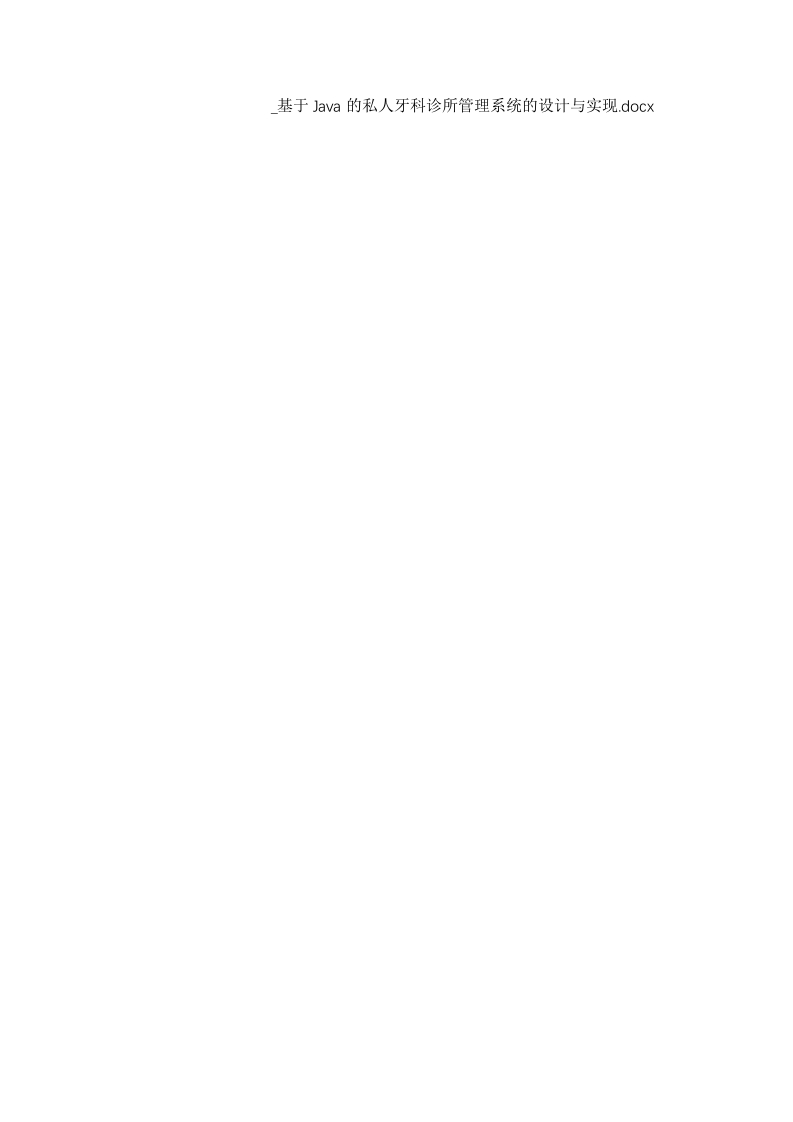 基于Java的私人牙科诊所管理系统的设计与实现.docx摘要随着计算机网络的快速发展,越来越多的工作都可以通过计算机来完成,这样不但可以提高人们的工作效率,还可以保证数据的完整性和信息的存储性。目前私人牙科诊所管理的业务非常多,只靠人工管理效率很低,所以急需开发一个私人牙科诊所管理系统来对牙科诊所进行信息化管理。系统采用SSM架构、Java语言和Ajax技术来进行业务系统的编码及其开发,使用ySQL作为数据库,实现了私人牙科诊所管理系统。系统实现的功能模块有:用户信息管理模块、药品管理模块、医嘱信息管理、病历信息管理、病历导出模块、公告信息管理、统计病症率信息管理、预约信息管理等。最后,对私人牙科诊所管理系统进行了测试,测试结果表明,系统界面美观,功能完善,方便了用户的使用。关键词:牙科诊所:Java语言:SSM框架:MySQL数据库IABSTRACTWith the rapid development of computer networks,more and more work can be completedby computers,which can not only improve people's work efficiency,but also ensure the integrityof the data and the storage of information.At present,the business of private dental clinicmanagement is very much,only by manual management efficiency is very low,so it is urgent todevelop a private dental clinic management system to carry out information management ofdental clinic.The system uses SSM architecture,Java language and Ajax technology to carry outthe coding and development of the business system,and uses MySQL as the database to realizethe private dental clinic management system.The function modules of the system are:userinformation management module,drug management module,doctor's advice informationmanagement,medical record information management,medical record export module,announcement information management,statistical disease rate information management,appointment information management,etc.Finally,the private dental clinic management systemis tested.The test results show that the system has beautiful interface and perfect function,whichis convenient for users.Key Words:Dental Clinic;Java Language;SSM Framework;MySQL Database