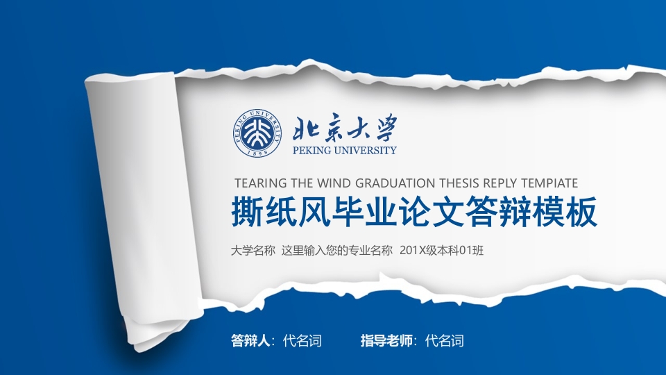 PEKING UNIVERSITYTEARING THE WIND GRADUATION THESIS REPLY TEMPIATE撕纸风毕业论文答辩模板大学名称这里输入您的专业名称201X级本科01班答辩人:代名词指导老师:代名词01课题背景及内容02课题现状及发展情况目录CONCENTS03研究思路及过程04实验数据结果05解决方案及总结第一部分课题背景及内容Your content to play here,or through your copy,paste in this box,andselect only the text.PART 01