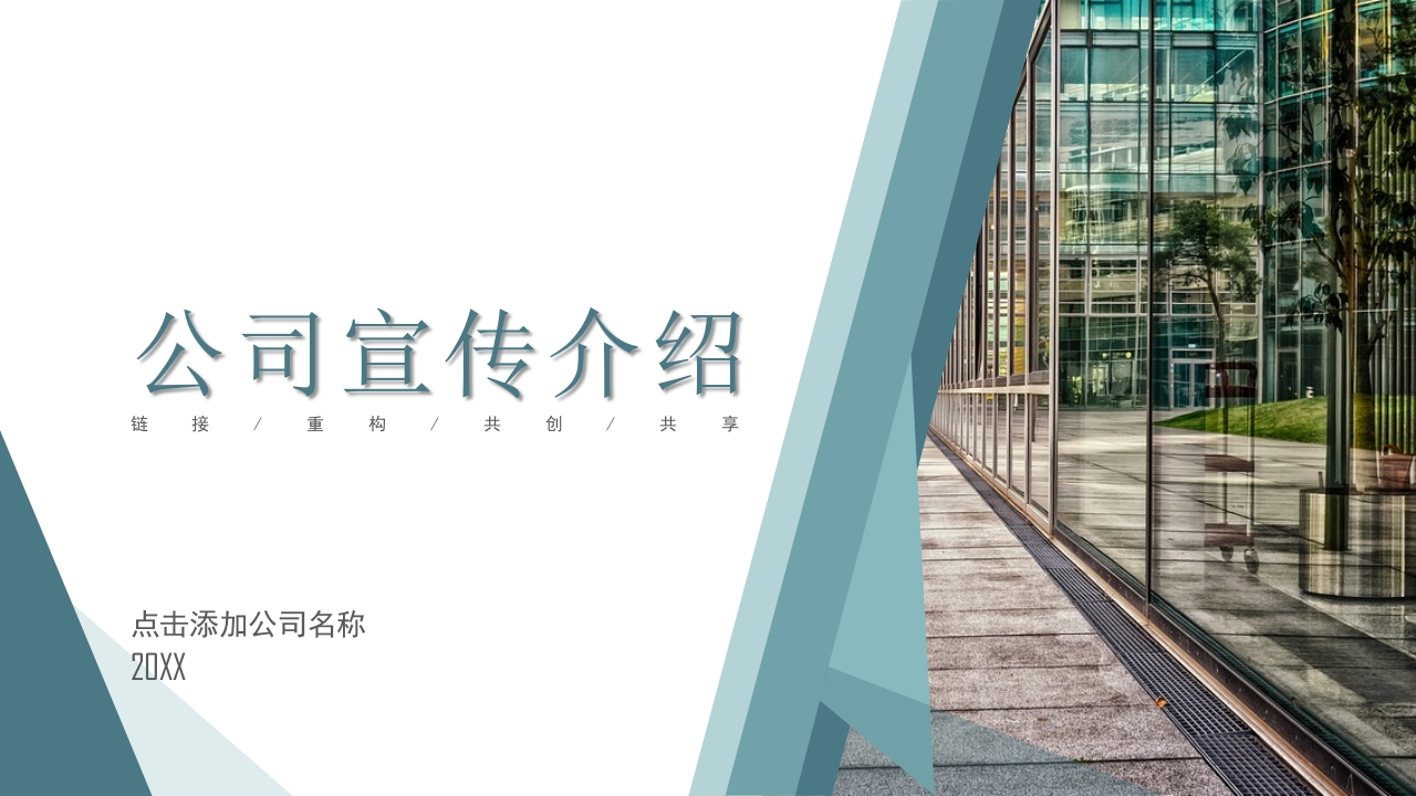 公司宣传介绍链接构共创点击添加公司名称20XXCONTENTS目录01公司概况02产品与服务03优势与资源04规划及未来过渡页Transition Page第一章公司概况1.公司简介2.发展历程3.公司定位4.公司宗旨5.组织结构3