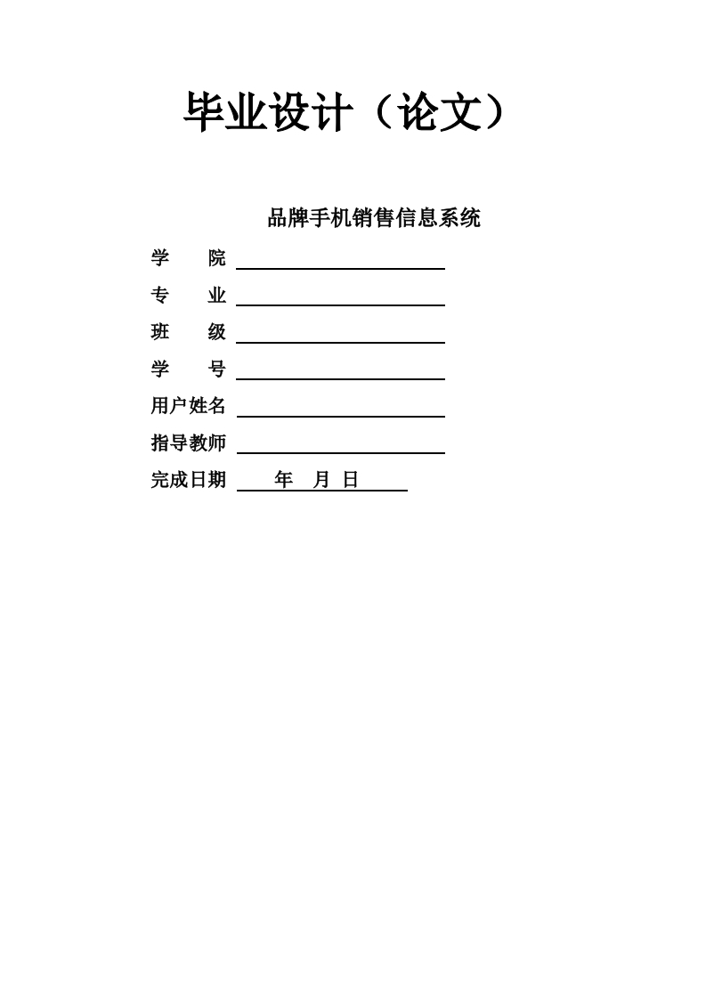 毕业设计(论文)品牌手机销售信息系统学院专业班级学号用户姓名指导教师完成日期年月日摘要随着科学技术的飞速发展,各行各业都在努力与现代先进技术接轨,通过科技手段提高自身的优势:对于品牌手机销售信息系统当然也不能排除在外,随着网络技术的不断成熟,带动了品牌手机销售信息系统,它彻底改变了过去传统的管理方式,不仅使服务管理难度变低了,还提升了管理的灵活性。这种个性化的平台特别注重交互协调与管理的相互配合,激发了管理人员的创造性与主动性,对品牌手机销售信息系统而言非常有利。本系统采用的数据库是Mysql,使用JSP技术开发,运行环境使用Tomcat服务器,ECLIPSE是本系统的开发平台。在设计过程中,充分保证了系统代码的良好可读性、实用性、易扩展性、通用性、便于后期维护、操作方便以及页面简洁等特点。关键字:品牌手机销售信息系统Mysq1数据库JSP技术AbstractWith the rapid development of science and technology,all walks of life are trying tointegrate with modern advanced technology,and improve their own advantages throughscientific and technological means.Of course,the mother and child e-commerce system cannot be excluded.With the continuous maturity of network technology,the mother and childe-commerce system has been driven,which has completely changed the traditionalmanagement methods in the past.It not only makes the service management less difficult,butalso improves the service quality It improves the flexibility of management.This personalizedplatform pays special attention to the coordination of interaction and management,andstimulates the creativity and initiative of managers,which is very beneficial to the mother andchild e-commerce system.The database of this system is mysql,which is developed by JSP technology.The runningenvironment is Tomcat server.Eclipse is the development platform of this system.In thedesign process,it fully ensures the good readability,practicability,expansibility,universality,easy to maintain,easy to operate and concise page of the system code.Key words:mother and child e-commerce system MySQL database JSP technology目录第一章绪论.…11.2国内外研究概况...1.3研究的内容..2第二章关键技术的研究,2.1JSP技术介绍...332.3 ECLIPSE开发环境..2.4 Tomcat服务器..2.5 MySQL数据库....5第三章系统分析.…3.1系统设计目标.…3.2系统可行性分析..63.3系统功能分析和描述3.4系统UL用例分析.3.4.1管理员用例....9