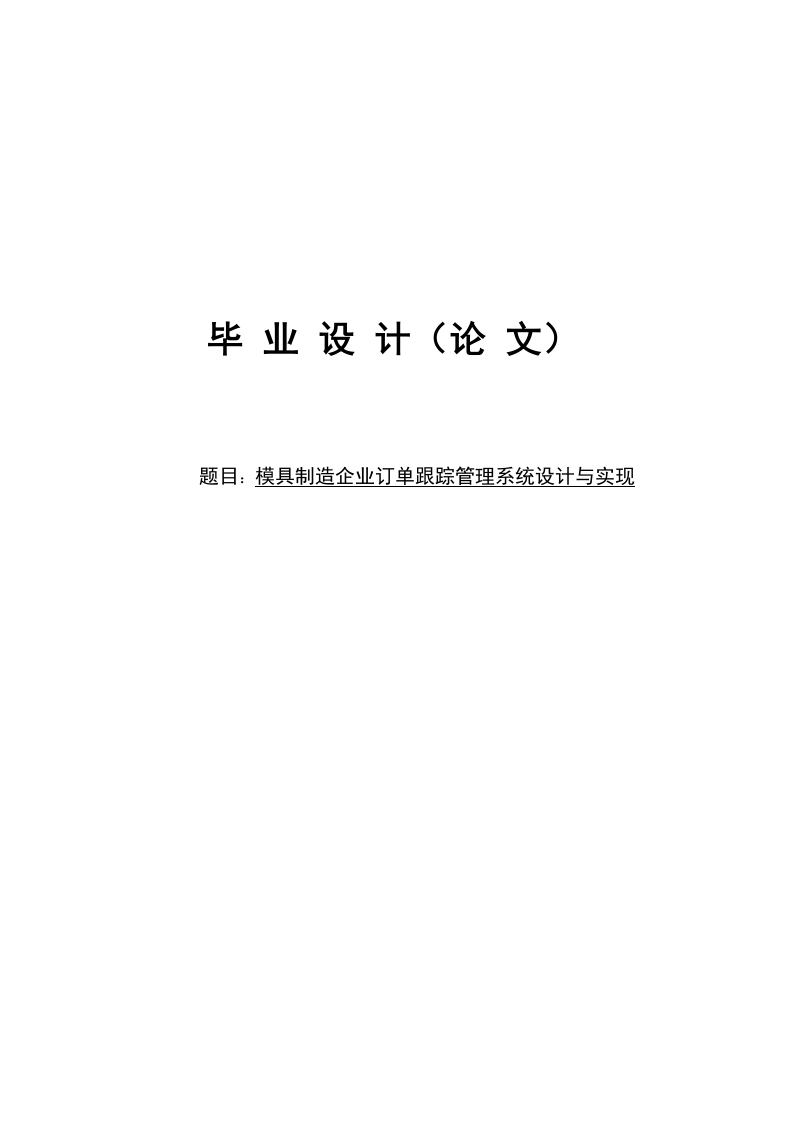 毕业设计(论文)题目:模具制造企业订单跟踪管理系统设计与实现摘要现代经济快节奏发展以及不断完善升级的信息化技术,让传统数据信息的管理升级为软件存储,归纳,集中处理数据信息的管理方式。本模具制造企业订单跟踪管理系统就是在这样的大环境下诞生,其可以帮助管理者在短时间内处理完毕庞大的数据信息,使用这种软件工具可以帮助管理人员提高事务处理效率,达到事半功倍的效果。此模具制造企业订单跟踪管理系统利用当下成熟完善的SSM框架,使用跨平台的可开发大型商业网站的Java语言,以及最受欢迎的RDBMS应用软件之一的Mysql数据库进行程序开发.模具制造企业订单跟踪管理系统的开发根据操作人员需要设计的界面简洁美观,在功能模块布局上跟同类型网站保持一致,程序在实现基本要求功能时,也为数据信息面临的安全问题提供了一些实用的解决方案。可以说该程序在帮助管理者高效率地处理工作事务的同时,也实现了数据信息的整体化,规范化与自动化。关键词:模具制造企业订单跟踪管理系统:SSM框架;Mysql;自动化AbstractThe fast-paced development of the modern economy and the continuousimprovement and upgrading of information technology have allowed the managementof traditional data information to be upgraded to software storage,induction,andcentralized management of data information.This book lending system was born insuch a large environment,which can help managers to process huge data informationin a short time.Using this software tool can help managers improve transactionprocessing efficiency and achieve double the result with half the effort.This booklending system uses the current mature and perfect SSM framework,cross-platformJava language that can be used to develop large-scale commercial websites,andMysql database,one of the most popular RDBMS application software,for programdevelopment.It realizes the functions of book basic data management,bookborrowing and return,review of registered teacher information,and announcementinformation release.The development of the book lending system is designed to besimple and beautiful according to the needs of the operator.The layout of the functionmodule is consistent with the same type of website.When the program realizes thebasic requirements,it also provides some practical solutions for the security problemsfaced by the data information..It can be said that this program not only helpsmanagers efficiently handle work affairs,but also realizes the integration,standardization and automation of data information.Key Words:Book borrowing system;SSM framework;Mysql;automation