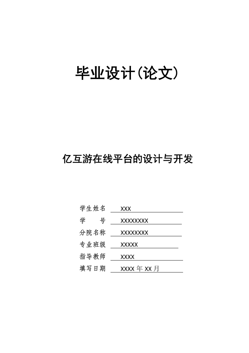 毕业设计(论文)亿互游在线平台的设计与开发学生姓名XXX学号XXXXXXXX分院名称XXXXXXXX专业班级XXXXX指导教师XXXX填写日期摘要随着旅游业的迅速发展,传统的旅游资讯查询方式,已经无法满足用户需求,因此,结合计算机技术的优势和普及,特开发了本亿互游在线平台。本文研究的亿互游在线平台基于SSM框架,采用JSP技术、Java语言和MYSOL数据库设计开发。通过本系统,满足了不同权限用户的需求,包括管理员、用户和前台,用户通过本系统可查看旅游信息,注册登录后还可进行酒店预订、美食购买等,前台注册登录后可实现景点信息管理、路线规划管理、景点美食管理以及住宿信息管理功能,管理员可登录系统后台对系统进行全面管理,确保系统正常稳定运行,更好的为用户服务。本系统经过测试,运行效果稳定,操作方便、快捷,是一个功能全面、实用性好、安全性高,并具有良好的可扩展性、可维护性的亿互游在线平台。关键字:亿互游在线平台:SSM框架:JSP技术:MYSQL数据库AbstractWith the rapid development of the tourism industry,traditional travel information querymethods have been unable to meet the needs of users.Therefore,combined with theadvantages and popularization of computer technology,an online platform of BenyiInteractive has been specially developed.The Yihuyou online platform studied in this paper is based on the SSM framework andis designed and developed using JSP technology,Java language and MYSQL database.Through this system,the needs of users with different permissions are met,includingadministrators,users,and front desks.Users can view travel information through this system.After registering and logging in,they can also make hotel reservations and food purchases.After logging in,the front desk can realize scenic spot information.With the functions ofmanagement,route planning management,scenic spot food management,andaccommodation information management,the administrator can log in to the systembackground to fully manage the system to ensure the normal and stable operation of thesystem and better serve users.The system has been tested and has stable operation effect,convenient and fastoperation.It is an online platform with comprehensive functions,good practicability,highsafety,and good scalability and maintainability.Key words:Yihuyou online platform;SSM framework;JSP technology;MYSQL database