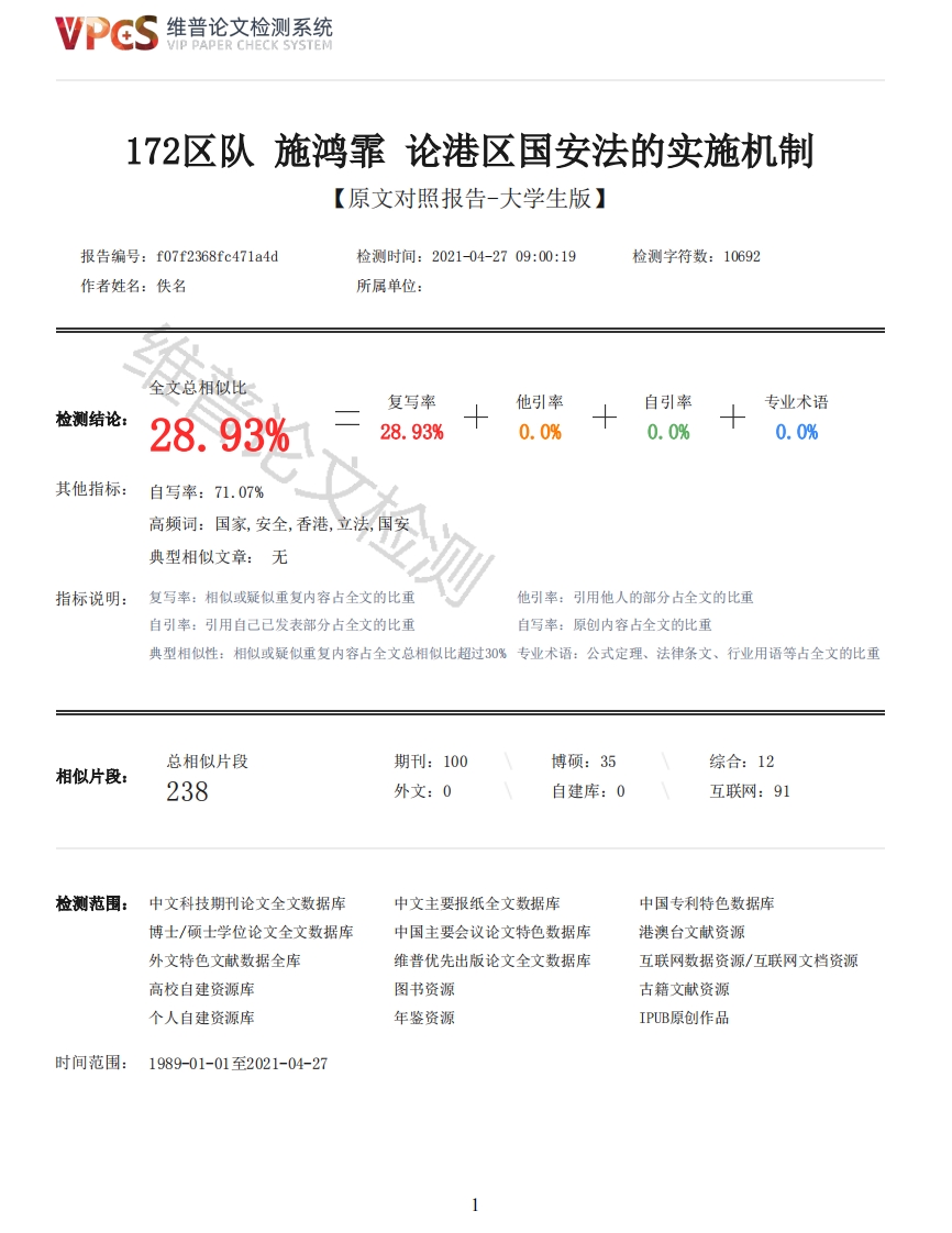 172区队 施鸿霏 论港区国安法的实施机制_原文对照报告(文档+源码)_kaic