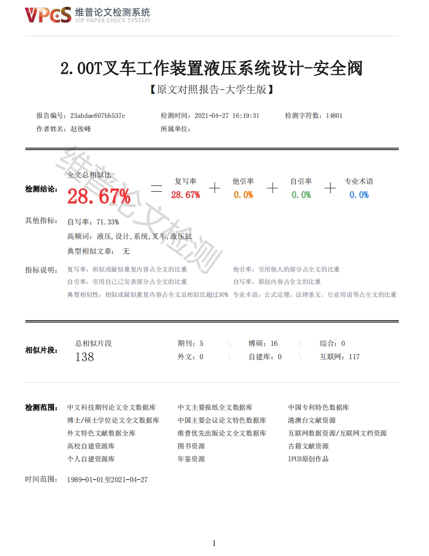 首页毕业论文金融200T叉车工作装置液压系统设计安全阀_原文对照报告(文档+源码)_kaic