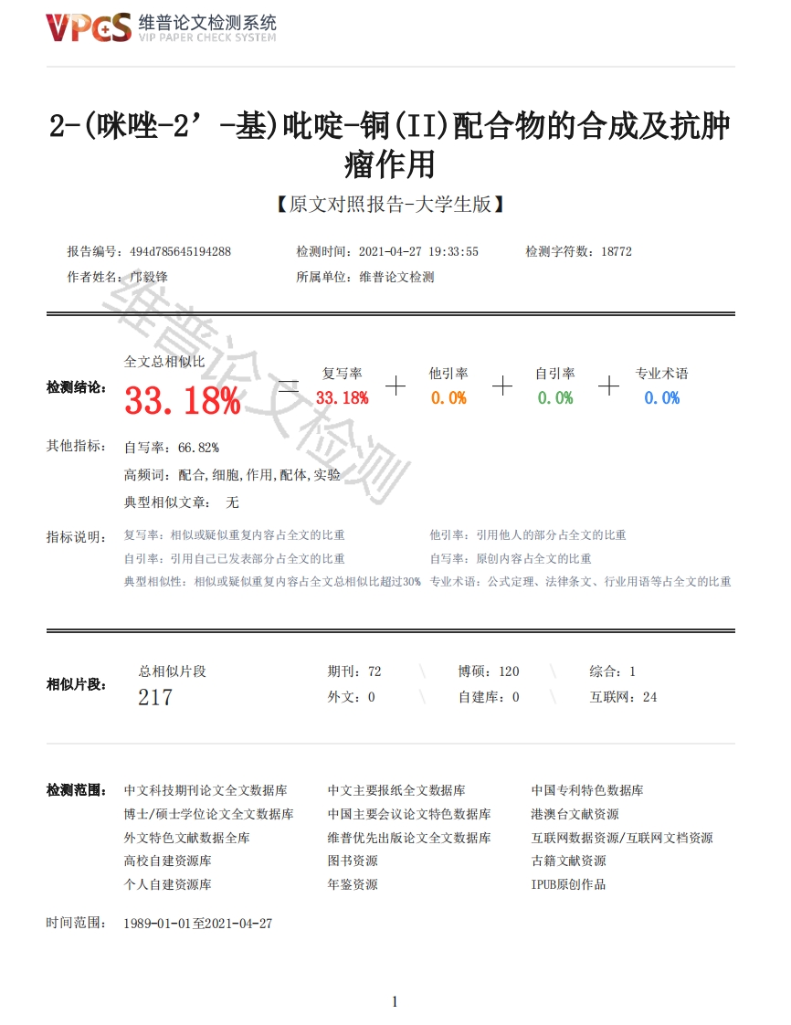 2咪唑2基吡啶铜II配合物的合成及抗肿瘤作用_原文对照报告(文档+源码)_kaic