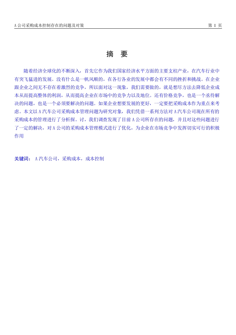 首页毕业论文范文模板1_1_4_6_A公司采购成本控制存在的问题及对策