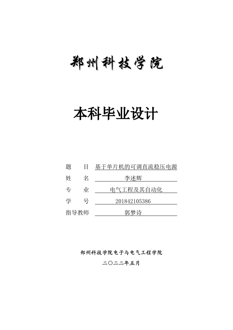 1_201842105386-李述辉-基于单片机的可调直流稳压电源1(2)