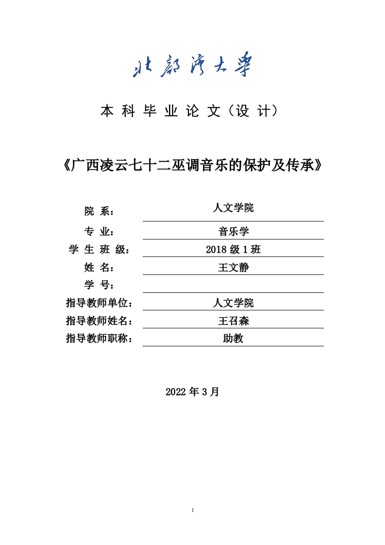 首页毕业论文范文模板1_广西凌云七十二巫调音乐的保护及传承