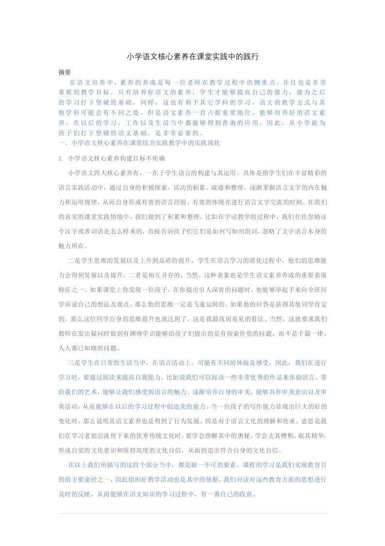 首页毕业论文范文模板1_小学语文核心素养在课堂实践中的践行(1)