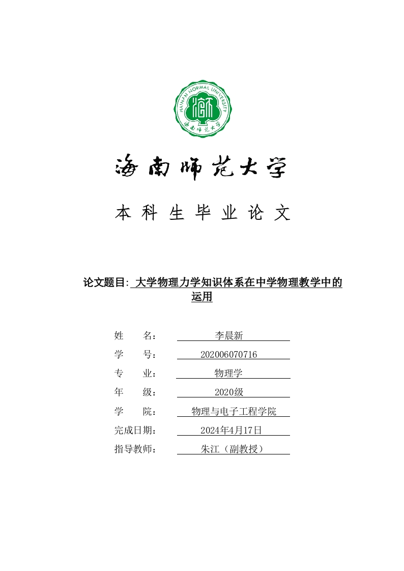 大学物理力学知识体系在中学物理教学中的运用重23.0%