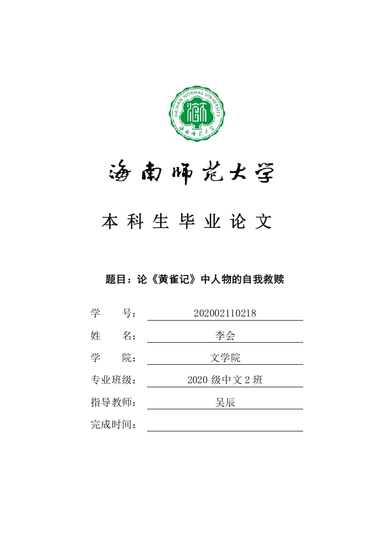本科生毕业论文题目:论《黄雀记》中人物的自我救赎学号:202002110218姓名:李会学文学院专业班级:2020级中文2班指导教师:吴辰完成时间:双击此处页眉输入论文标题本科生毕业论文独创性声明本人声明所呈交的毕业论文是本人在导师指导下进行的研究工作及取得的研究成果,除了文中特别加以标注和致谢的地方外,本论文中没有抄袭他人研究成果和伪造数据等行为。与我一同工作的同志对本研究所做的任何贡献均已在论文中作了明确的说明并表示谢意。论文作者签名:日期:年月日本科生毕业论文使用授权声明海南师范大学有权保留并向国家有关部门或机构送交毕业论文的复印件和磁盘,允许毕业论文被查阅和借阅。本人授权海南师范大学可以将本毕业论文的全部或部分内容编入有关数据库进行检索,可以采用影印、缩印或其他复印手段保存、汇编毕业论文。论文作者签名:日期:年月日指导教师签名:日期:年月日双击此处页眉输入论文标题目录引言662.扭曲的自我救赎…8(二)柳生的沉沦与自我救赎.·91012二、次要人物的自我救赎..·13(一)祖父的丢魂的必然性1(二)祖父找魂的自我救赎14三、大变革时期人物的悲剧性14结论…16参考文献17182