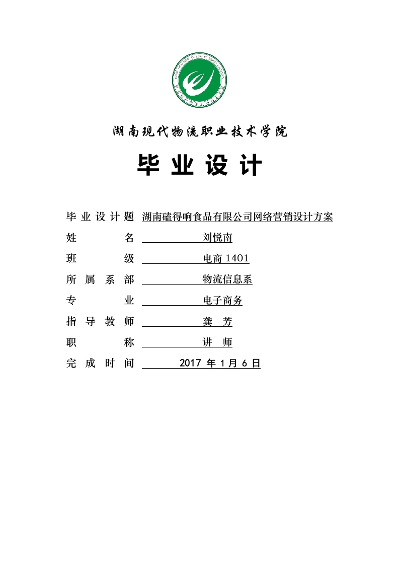 湖南观代物流职业技术学院毕业设计毕业设计题湖南磕得响食品有限公司网络营销设计方案姓名刘悦南班级电商1401所属系部物流信息系专业电子商务指导教师龚芳职称完成时间2017年1月6日摘要随着互联网时代的快速发展和信息技术的突飞猛进,计算机网络已经廷伸到了世界的各个角落。网络技术的广泛应用,为企业的生存构架了一种崭新的生存空间。在这信息爆炸的时代,如何掌握和利用网络工具来进行商务运作,日益成为企业在这个信息时代赢得竞争优势的重要手段之一。伴随着经济全球化的到来,国内中小企业的生存环境日益恶化,竞争日益激烈。如何有效开展营销活动成为影响中小企业发展与生存的重要问题。本论文主要介绍了湖南磕得向食品有限公司网络营销的现状,分析了其网络营销策路并对其进行了$W0T分析,最后在问题的基础上提出了建议和对策。关键字:食品;网络营销;营销策略目录第1章湖南磕得响食品有限公司简介…1.1行业现状分析1.2湖南磕得响食品有限公司经营现状,222.1SW0T优势2.2SW0T劣势…52.3SW0T机遇…52.4SW0T挑战.….6第3章湖南磕得响食品有限公司竞争对手分析3.1竞争对手1:洽洽香瓜子…73.2竞争对手2:真心瓜子…第4章湖南磕得响食品有限公司网络推广策略.114.1Q0群发推广…4.3SNS社区营销推广16第5章营销策略存在的问题和解决方法5.1营销策略存在的问题.285.2解决困难的办法29总结…致谢词…32参考文献…