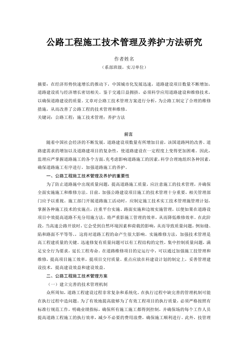 公路工程施工技术管理及养护方法研究作者姓名(系部班级,实习单位)摘要:在经济形势快速增长的推动下,中国城市化发展迅速,道路建设项目数量不断增加,道路建设质与经济增长密切相关。鉴于交通日益拥挤,必须科学应用道路建设和维修技术,以确保道路建设的质量。文章对公路工技术管理方案进行分析,为公路工制定了合理的维修措施,从而改善了公路工程的技术管理和维修。关键词:公路工程:施工技术管理:养护方法前言随着中国社会经济的不断发展,道路建设项数量有所增加目前,该国道路网的改善、道路建需求的增加以及道路建项目的复杂性,使道路建设在一定程度上变得更加困难。因此,监理应严掌握道路施工的各个方面,充考虑影响道路施工的因素,科学合理地组织各种因素,确保道路施工有序进行,加强道路施工的养护。一、公路工程施工技术管理及养护的重要性为了防止道路施中出现质量问题,提高道路施工质量,应注意施工的技术管理,并确保全面实施施工和维修方法。目前,加强公路建设项目施工的技术管理十分重要,相关管理部门应予以重视。施工部门开展道路施工活动时,应制定施工技术实工技术管理施管理计划,掌握各种施工技术的实施点,注重平台实施、路面实施和边坡实施管理,以便如果在道路设项目中效提高道路不充分用施方法,将严重影施工管理的效率,从而降低维修效率。在此阶段,当高速公路开放时,它会受到自然环境因素和荷载的影响,从而导致质量问题,例如缝、陷和路面不平等等。,这将对道路工程的命产生很大影响。实施维修方法,加强技术管理是高工程建质量的关键。迅速修复有质量问题可以有工程结构的定性,集中控制质量问题,满足安全行为要求,延长工程寿命。在道路维修项目的定运行中,可以通过加强施工技管理和维修,提高项目施工效率,提项目交付质量。重点应放在科建设计划的制定上,妥善管理建设技术,提高建设效益和建设效益。二、公路工程施工技术管理方案(一)建立完善的技术管理机制众所周知,道路工程建设过程非常复杂和系统化。在执行过程中缺完善的管理机制可能在执行过程中造问题。为了有效地提高能够为了有效工程项目的执行质量,必须严格按照有标准行规范工作,明确业绩指标,确保所有施工施工都得到控制,并确保场的每个工作人员提高道路工程施工的执行效率,减少不必要的费用浪费,确保施工顺利进行。此外,技管理内容必须在施工期间亲自实施。(二)原材料管理质量控制要求。严格按照技质量要求,选择誉良好、合格的材料供应商,采用招标方法量采购水泥等原材料:()以科学和合理方式制定采购、采购和调动计划:严格按照工厂要组织工厂原料,实现标准化物管理,明确标相关材料。原料进入工厂前,必须严格查原料的资质和资质材料,同时对原料进行抽查,确保其符合施工要求:在施工过程中,加强原材料质量控制,确保施工质量。原材料试验。原材料检验是原材料管理中的重要工作。检测钢筋原材料时,为钢筋建立了接收批次,并为个接收批次检测钢筋的物理和化学特性。试点项目包括伸验、反复弯曲验和时义检验拉伸试验。还必须在检测水泥批次。袋装水须与同一水泥厂和进厚骨料工厂的日期相同。每批检验总数不得超过20t,散装水泥每批检验数不得超过50t。水泥试验项目包泥的每检验必括初始和最终冷凝时间、砂浆强度和细度。检查时,主要有两种检查批次,一种用于混合浓凝土的厚骨料,另一种用于混合非浓混凝土的骨料。粗骨料试验包括泥量、结垢值、泥浆量等。在细骨料素包括的验过程中,在建立试验批次时,各试验批次应按照50m的要求进行。细骨料试验包括污泥含量、筛分和污泥含量:当检测煤灰时,需要检测的元细度、密度和效果。(三)路基施工技术管理在道路施工过程中,平台是关键的基础要素,填方性能参数压施工质量与平台整个道路工程施实工作的工质量相关。首先,应根据平台建设的实际情况合理制定技术计划。二是加强原料质量控制,严格控制填台研磨料的含水量,注意平质量需严格控制。最后,加强填料砂轮工质量控制。在平台施工阶段,可以采用分层压实方法严格控制每层厚度在2030厘米之间。必须在完成填充压实工作之前立即进行必要质量控制和检查,以确保后续工作的质量。(四)路面施工技术要点路面施工技术依赖于沥青混凝土的铺设和施缝的处理。分摊时,分摊的厚和宽度必符合设计标准,且分摊底板的高程角度必须精确。散射的行走速度必须稳定均匀。在扩散之前,须清除轨散过程的底部的碎片,并确保扩业务连续性。如果中间的停止持续时间超过一小时,则必须定义水平连接。为了提高路面平整度,必须正确处理工连接,首先必须删线段之间的平除连接处的接缝,并使用3m规则检查平整度。规则在散布级的起点是有边界的,使用切削机器切削接头,然后使用压缩机器展平接头。您也可结合手动平滑化方法,以确保前滑过渡。(五)桥梁施工技术管理要点在箱型梁浇筑过程中,应根据道路工程目的施工要求选择桥梁预应力适的强度混凝土层。先浇筑底板,再浇筑腹板,然后连接钢筋,在振动操作过程中,施工技术人员选择插入和插荡器,并检查振密实度。其中,在框架内,为了避免钢绞架缠绕,有必要合理选择刚性冷却方式,控制冷却率。张拉结束时必须进