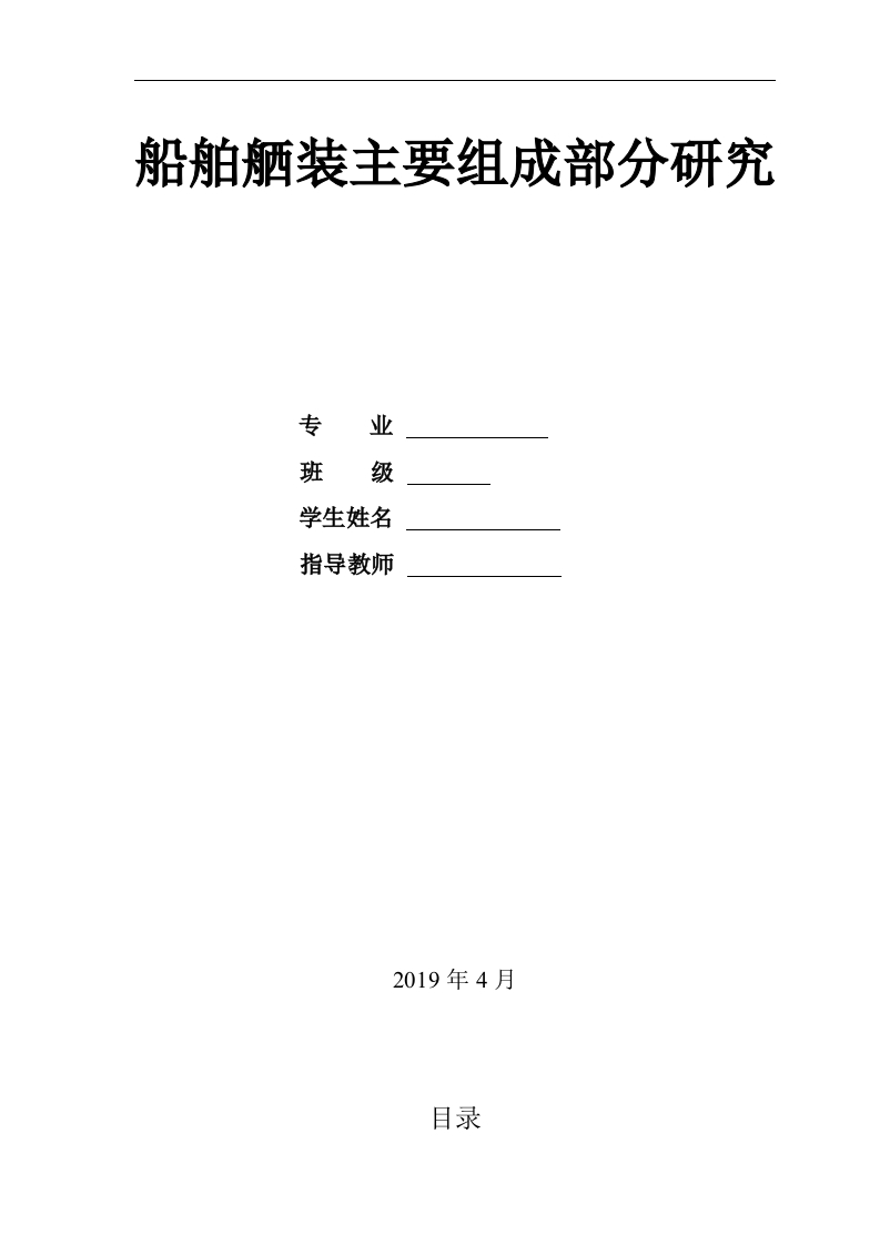 船舶舾装主要组成部分研究专业班级学生姓名指导教师2019年4月目录摘要…………1.1选题目的(研究背景)1.2课题介绍“………………二、船舶舾装设备的简介和其在船厂中的制造过程“…“··“62.1船舶舾装设备的简介……………2.2舾装作业的工艺阶段“………6三、舾装设备制定与制作方案“3.1舵设备…………………103.1.1舵设备的布置………103.1.2舵的制造过程………3.2锚设备”…………………3.2.1锚设备的布置………3.2.2锚的制造过程………133.3系泊设备…………………………143.3.1系泊设备的布置………3.3.2系泊设备的制造过程·3.4救生设备”………3.4.1救生设备布置………3.4.2救生艇的制造过程·…163.5起货设备”………………………1613.5.1起货设备的布置……四、结论与展望…………18参考文献…………………摘要:全面了解舾装设备的种类、工作原理和布置安排。包括舵设备、锚设备、系泊设备、救生设备、起货设备等的设计制作安装要求,以及船级社关于船舶设备相关的建造安装规范。并以某型拖船的舾装设备为研究对象,找出多种模型制作材料进行研究对比,选出合适的材料,并制定合适方案进行甲板设备模型设计制作安装。关键字:舾装设备:船舶:甲板设备模型Research on Main Components of ShipOutfittingABSTRACT:Understand the type,working principle and arrangement of outfittingequipment in an all-round way.Including the design,manufacture and installationrequirements of rudder equipment,anchor equipment,mooring equipment,life-savingequipment,cargo lifting equipment and other equipment,as well as the classificationsociety's relevant construction and installation specifications for ship equipment.Takingthe outfitting equipment of a tugboat as the research object,this paper finds out a varietyof model making materials for research and comparison,chooses suitable materials,andformulates appropriate plans for deck equipment model design,manufacture andinstallationKey words:outfitting equipment;ship;deck equipment model2