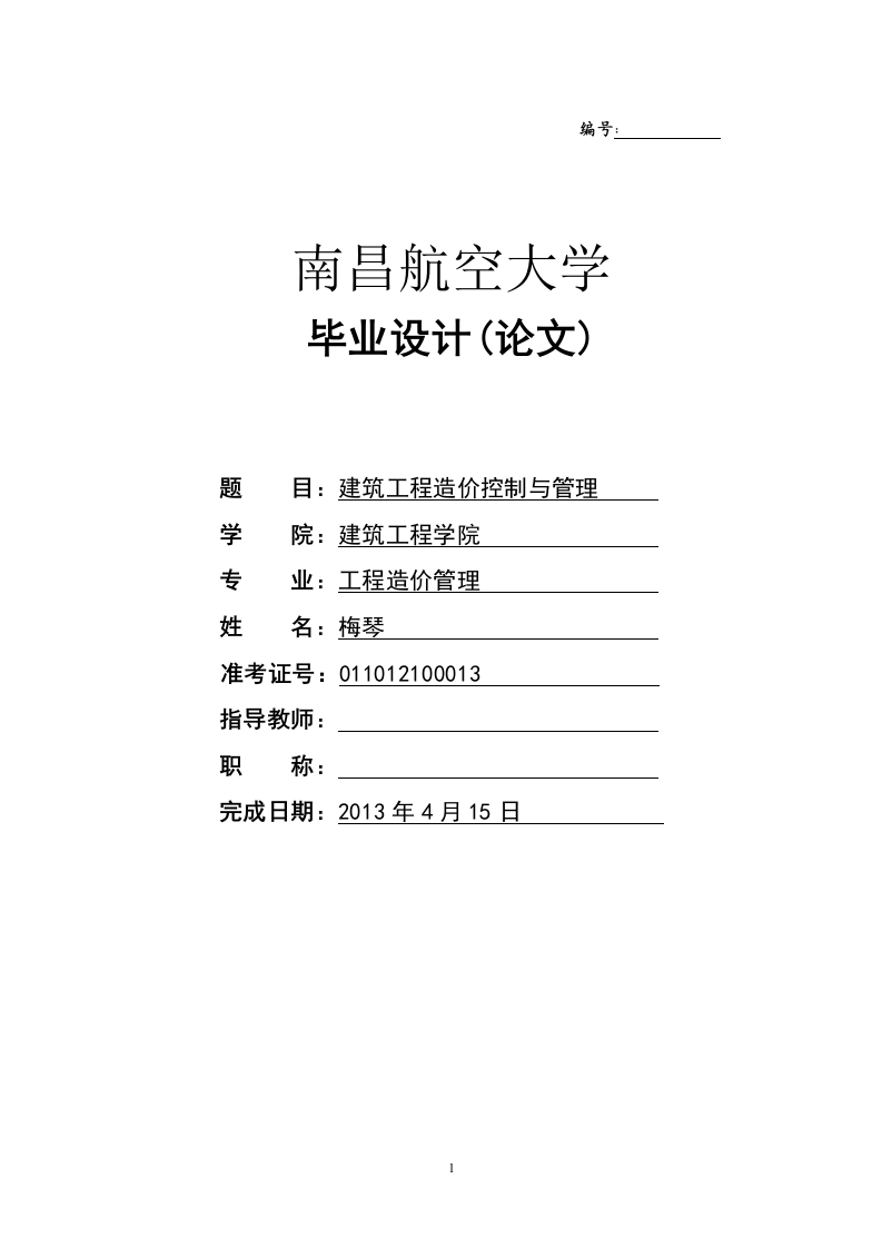 编号:南昌航空大学毕业设计(论文)题目:建筑工程造价控制与管理学院:建筑工程学院专业:工程造价管理姓名:梅琴准考证号:011012100013指导教师:职称:完成日期:2013年4月15日建筑工程造价控制与管理摘要:建筑工程造价控制是建筑工程建设管理工作的重要组成部分,如何合理确定和有效控制工程投资,是工程项目建设的一大难题,如何使建筑工程造价管理与社会生产水平相适应,是建筑工程造价管理中需要解决的问题,只有加强建筑工程造价管理工作力度,提高建筑工程造价人员素质,才能使建筑工程造价管理走上国际化的道路,本文根据我国工程造价管理的现状,针对建筑工程造价控制的重要性,指出建筑工程造价控制应贯穿于项目的全过程,并分阶段的工程造价控制进行了探讨,以实现预期投资目标,充分发挥投资效益。关键词:建筑工程造价管理造价控制工程造价的确定是一个非常复杂的过程,尤其在建筑工程上,其产品的多样性和复杂性,决定了计价方法的多样性和复杂性。特别是对于政府财政投资的项目来说,对工程造价的控制显得尤为重要,既要保证好建筑工程项目的建筑物高质量要求,又要采取严格及有效的措施合理控制工程造价。一、我国工程造价管理的现状建筑工程造管理,就是运用科学技术原理和方法,在统一目标、各负其责的原则下,为确保建筑工程的经济效益和有关各方的经济权益所进行的对工程造价全过程、全方位的和符合政策及客观规律的全部业务行为和组织活动。在传统的计划经济时期建筑业不被视为是独立的物质生产部门,在建筑工程造价管理上,采用行政管理计划定价方式,因此,人们对工程造价管理没有足够的重视,建筑工程造价的确定往往是依据计划价格和行政规定进行编制。随着我国改革开放的发展和社会主义市场经济体制的建立,建筑工程的管理受到了极大的冲击,打开国门走出去,引进先进科学的管理模式,人们开始重新认识有关工程造价管理问题。由于我国实行的是概预算定额管理模式,普遍存在的问题是建筑工程造价难以客观真实地得到反映,概算超估算,预算超概算,决算超预算,突破计划投资的项目比比皆是。由于工程投资的确定缺乏科学合理性,导致工程实施中存在诸多问题。(一)政府政策性影响较多是造成“三超”的重要客观环境市场经济的特点是一般由价格机制来达到资源的优化配置,而不是政府直接决定2价格、管理经济,政府职能更多地是通过宏观经济政策,引导投资、生产等经济行为。然而在经济体制的变革时期,为更快地建立起新的经济运行机制,政府政策性调整对工程投资控制影响大,特别是1992年以后随着投资体制、财税体制、金融体制、对外贸易体制改革的进行,税率、利率、汇率、价格都发生了巨大的变化,价格(包括投资品价格)变动超出了市场决定价格情况下正常变动幅度和范围,也超出了工程造价增长预留费中估计的增长幅度。(二)主动控制工程造价意识不强主要表现是对建筑工程项目事前主动控制小,事后被动控制多:重竣工结算,轻施工图预算:重大中型项目设计概算,轻一般小项目设计概算,有的建设项目既不编制,也不上报审批。对施工图预算缺乏审定方案和报批程序,削弱了工程造价承上启下的作用,并直接带来施工图预算与竣工结算之间相互脱节,不仅加大工作量形成重复劳动,而且给工程造价超投资限额提供了条件。(三)工程造价管理的有关基础工作较薄弱主要表现在:编制可行性研究报告投资估算,有指标还不能满足工作需要:对编制初步设计总概算时所需的概算定额和指标,各有关部门有所规定,但其来源不畅通:对民用建筑的概算指标缺少地方有关的具体规定:设备材料价格信息系统不够健全,还不能定期发表材料价格指数,以指导工程造价的预测和调整。(四)片面强调计价依据的市场化,忽视计价依据控制工程造价的作用由于受计划经济体制的影响,我国的工程造价管理工作历来重视实施阶段的造价确定,不重视造价的有效控制。在这种管理方式的影响下,一方面,建设项目前期所需计价依据的缺乏,成为导致工程建设项目投资“三超现象的一个重要原因:另一方面,由于将工程造价管理仅限于实施阶段,造成了认识上的错觉,似乎一谈起计价依据的改革就笼统地归结到所谓的企业自主定价和市场形成价格,而不从工程造价全过程管理的思路出发考虑计价依据的改革。因为只注重实施阶段计价依据的改革,片面强调计价依据的市场化,从而忽视了计价依据在建设项目前期阶段对工程造价的控制作用。党的十一届三中全会以来,随着经济体制改革的深入和对外开放政策的实施,以及社会主义市场经济体制的建立,开始建立健全适合于社会主义市场经济发展的工程造价管理体系与模式,使工程造价的管理趋于科学合理。但是,我国的工程造价管理3