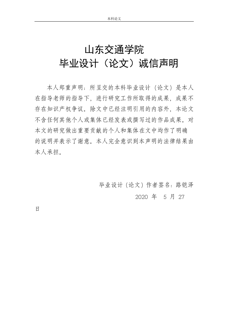 本科论文山东交通学院毕业设计(论文)诚信声明本人郑重声明:所呈交的本科毕业设计(论文)是本人在指导老师的指导下,进行研究工作所取得的成果,成果不存在知识产权争议。除文中已经注明引用的内容外,本论文不含任何其他个人或集体已经发表或撰写过的作品成果。对本文的研究做出重要贡献的个人和集体在文中均作了明确的说明并表示了谢意。本人完全意识到本声明的法律结果由本人承担。毕业设计(论文)作者签名:路铠泽2020年5月27日本科论文摘要“专车”不同于出租车,也不等于黑车,“专车”主要服务于高收入群体出行和商务出行需要,具有定制化、差异化的特征。“专车”接受行政监管,但却处于法律和政策的模糊地带,并没有获得明确的合法地位,无法公平地参与市场竞争。党的十九届四中全会提出了推进国家治理体系和治理能力现代化的总体目标,深入研究当前“专车”行政管理法律问题,提出相应的对策建议,积极探索“专车”行政管理的举措,对于推进交通运输领域治理体系和治理能力现代化,服务群众出行需求具有重要的实践意义。关键词:“专车”服务:行政管理:法律问题本科论文Abstract"Car hiring"are different from taxis and do not mean black cars."Car hiring"mainly serve the travel needs of high-income groups and business travel,and have thecharacteristics of customization and differentiation."Car hiring"are subject toadministrative supervision,but they are in a vague area of laws and policies.Theyhave not obtained a clear legal status and cannot participate in market competitionfairly.The Fourth Plenary Session of the Nineteenth Central Committee of the Partyput forward the overall goal of advancing the modernization of the country'sgovernance system and governance capabilities,in-depth study of the current legalissues of "car hiring"administration,put forward corresponding countermeasures andsuggestions,and actively explore measures for "car hiring"administration It is ofgreat practical significance to promote the modernization of the governance systemand governance capacity in the field of transportation and to serve the travel needs ofthe masses.Key words:"Car hiring"service;Administration;Legal Issues;