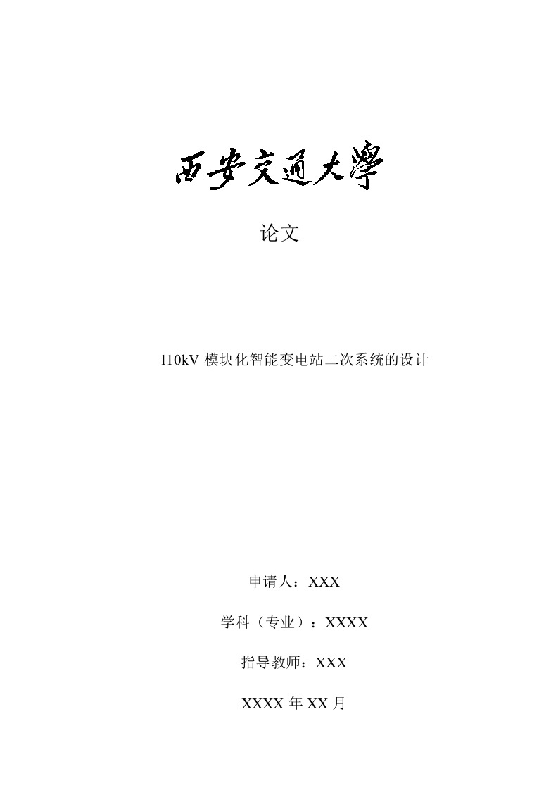 论文110kV模块化智能变电站二次系统的设计申请人:XXX指导教师:XXXXXXX年XX月网络教育学院毕业设计(论文)任务书专业班级层次姓名学号一、毕业设计(论文)题目二、毕业设计(论文)工作自年月日起至年月日止三、毕业设计(论文)基本要求:指导教师:网络教育学院毕业设计(论文)考核评议书指导教师评语:建议成绩:指导教师签名:年月日答辩小组意见:负责人签名年月日答辩小组成员毕业设计(论文)答辩委员会意见:负责人签名:年月日