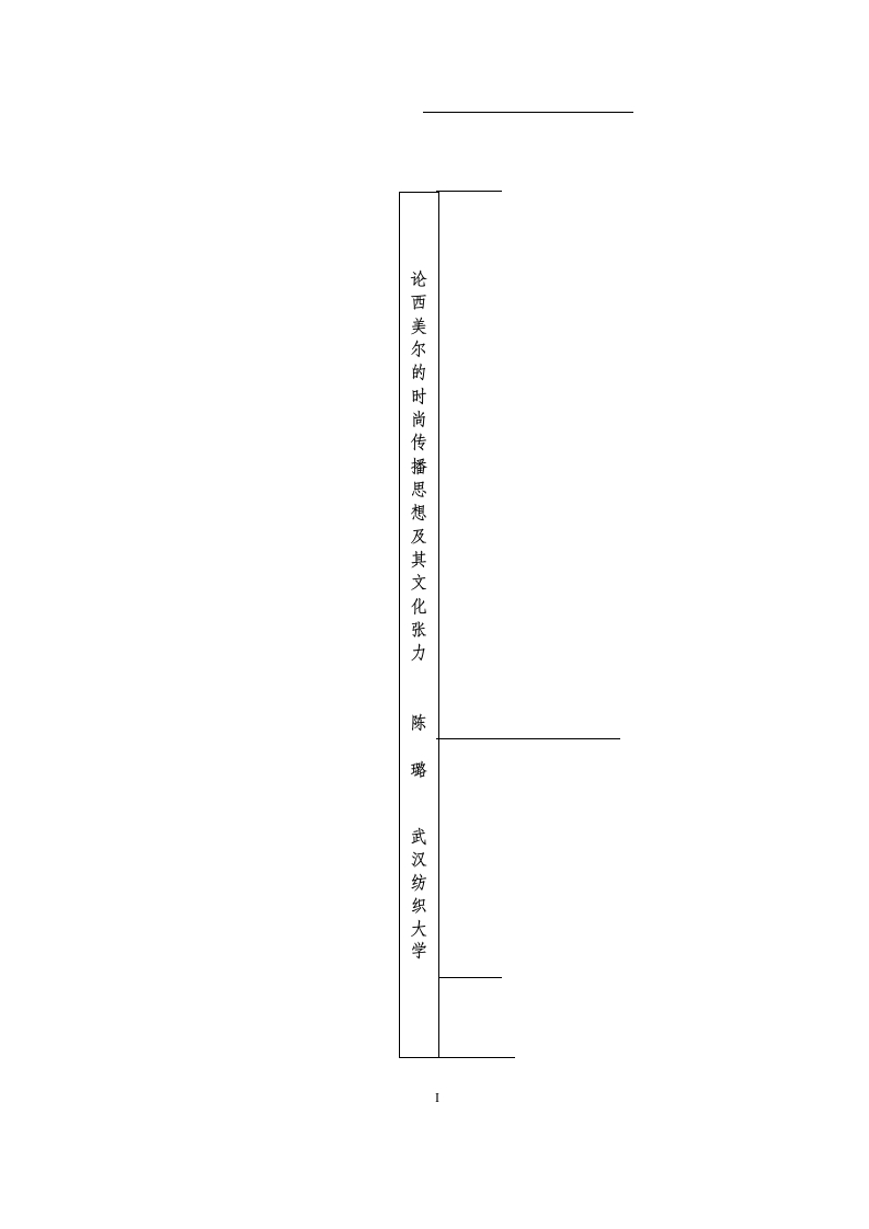 论西美尔的时尚传播思想及其文化张力陈武汉纺织大学分类号TS102.54学校代码10495UDC677学0415033005武汉纺织大学硕士学位论文论西美尔的时尚传播思想及其文化张力作者姓名:指导教师:张贤根教授学科门类:哲学专业:美学研究方向:时尚艺术与文化传播完成日期:二零一八年六月WuhanTextileUniversityM.E.DissertationOn the Conception and Culture Tension of theFashion Communication of SimmelByChen LuDirected byProfessor Zhang Xian-genJune 20181
